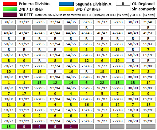 Quinto en la campaña 01/02 a tres puntos de poder promocionar, en la sesión 02/03 se retrocedió hasta la séptima plaza teniendo, ya en la edición 03/04, una nueva oportunidad que debido a la falta de calidad necesaria le llevó nuevamente al quinto puesto. Desilusionados por tanta adversidad, en la temporada 04/05 se dio un gran paso atrás con un equipo desconocido que terminó decimotercero causando malas sensaciones que en la campaña 05/06 fueron mitigadas en parte gracias a la séptima plaza alcanzada en Liga.