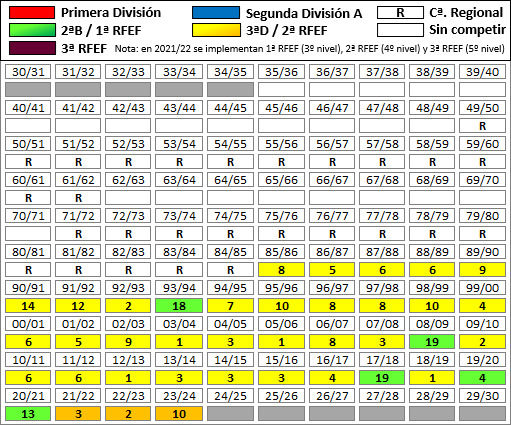 Al empezar los años veinte la Federación Española, en su voluntad por reestructurar las categorías nacionales que de ella dependen, suprime las tradicionales Segunda División B y Tercera División sustituyéndolas para la temporada 21/22 por dos nuevas tituladas Primera RFEF y Segunda RFEF respectivamente a las que se añade una tercera denominada Tercera RFEF que se convierte en el quinto nivel.