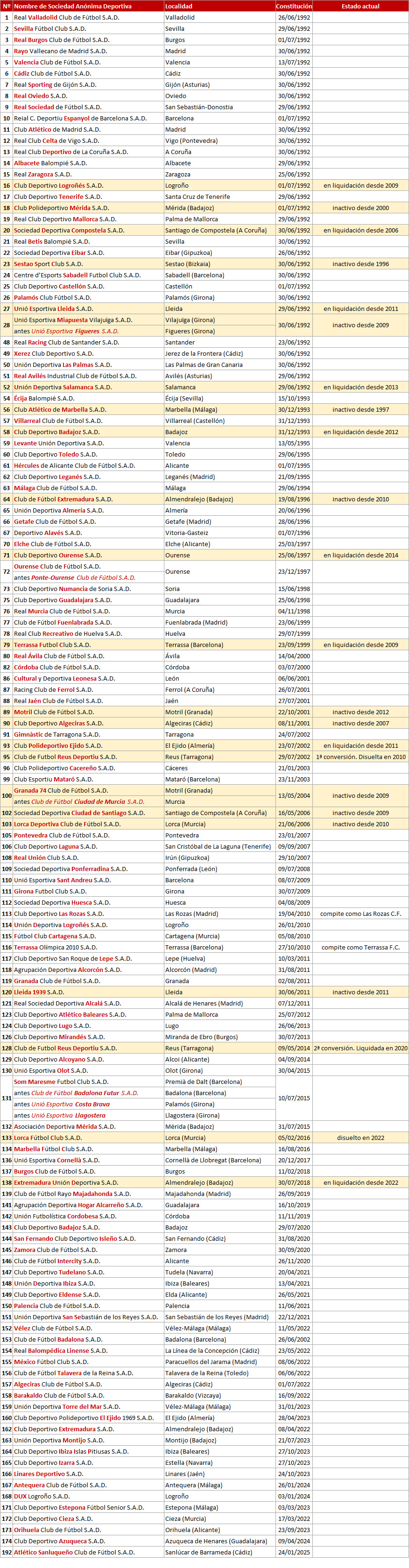 - Clubs patrocinadores y filiales, equipos principales y dependientes